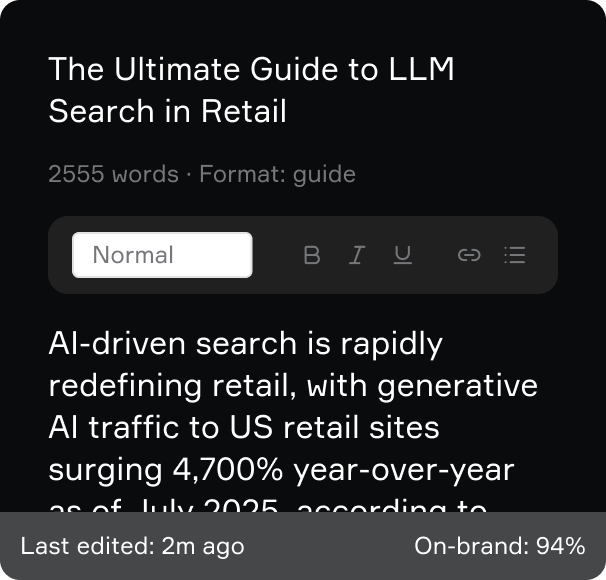 Turn visibility gaps into briefs and drafts built for how people (and AI) discover brands.